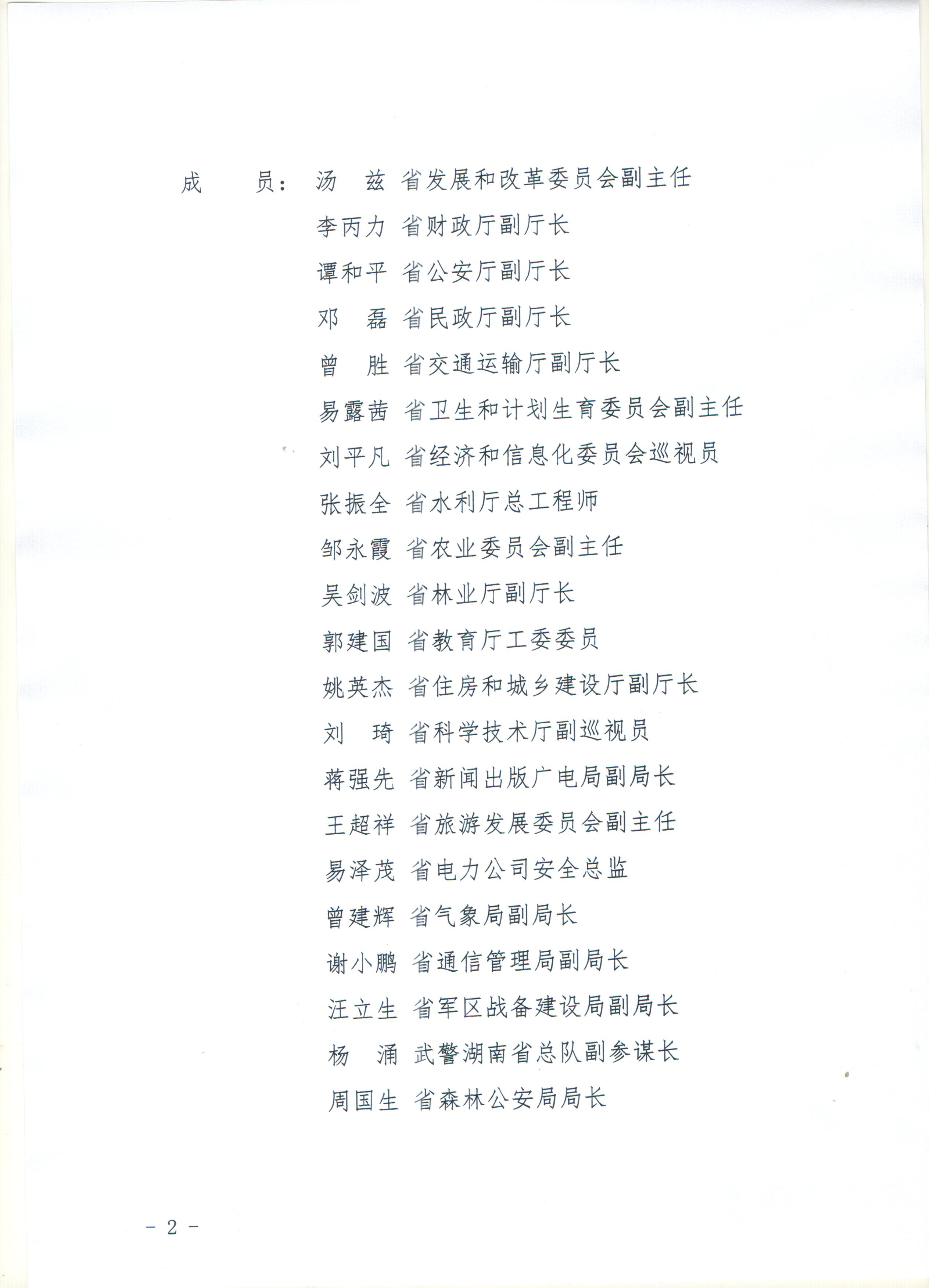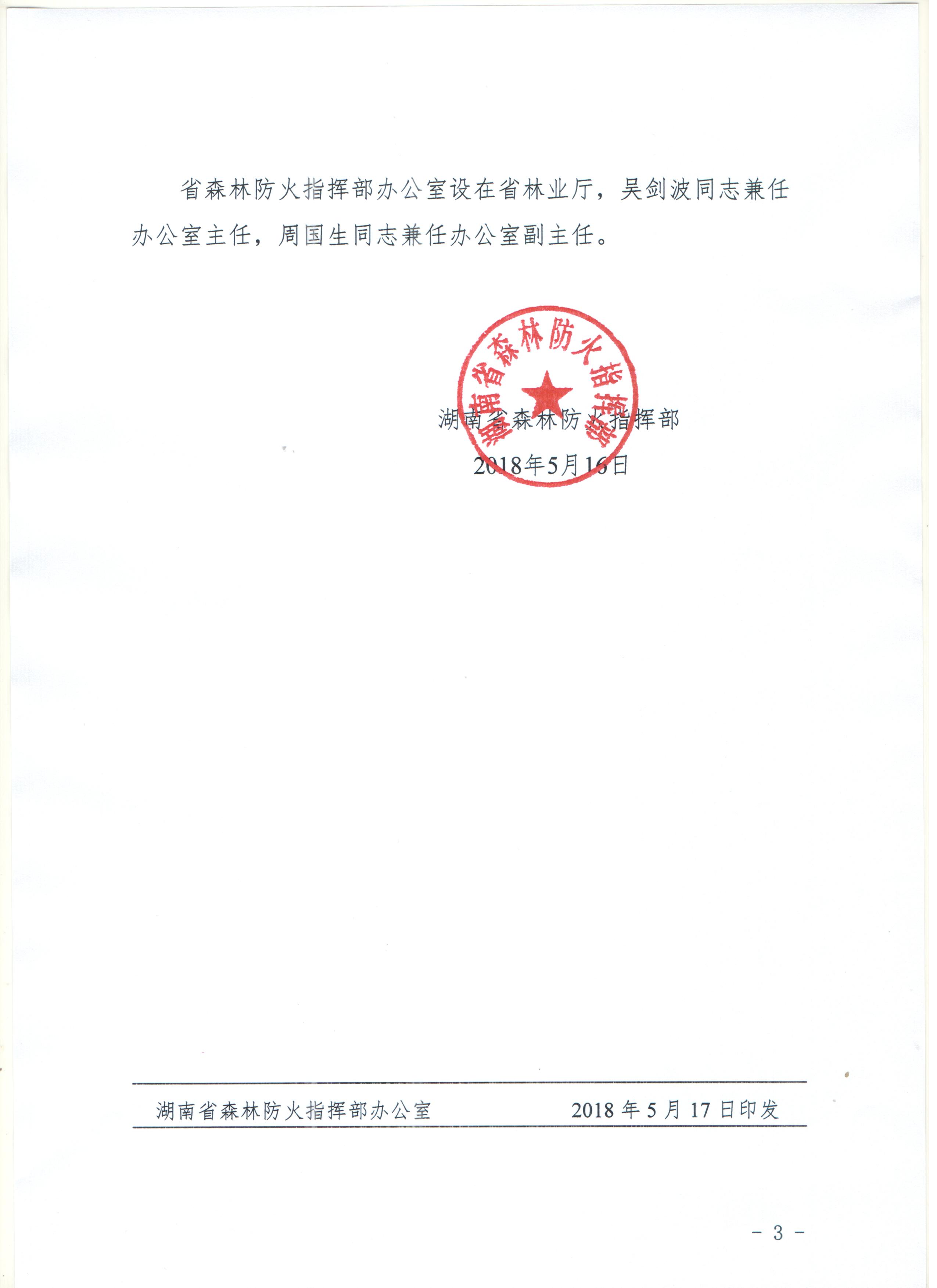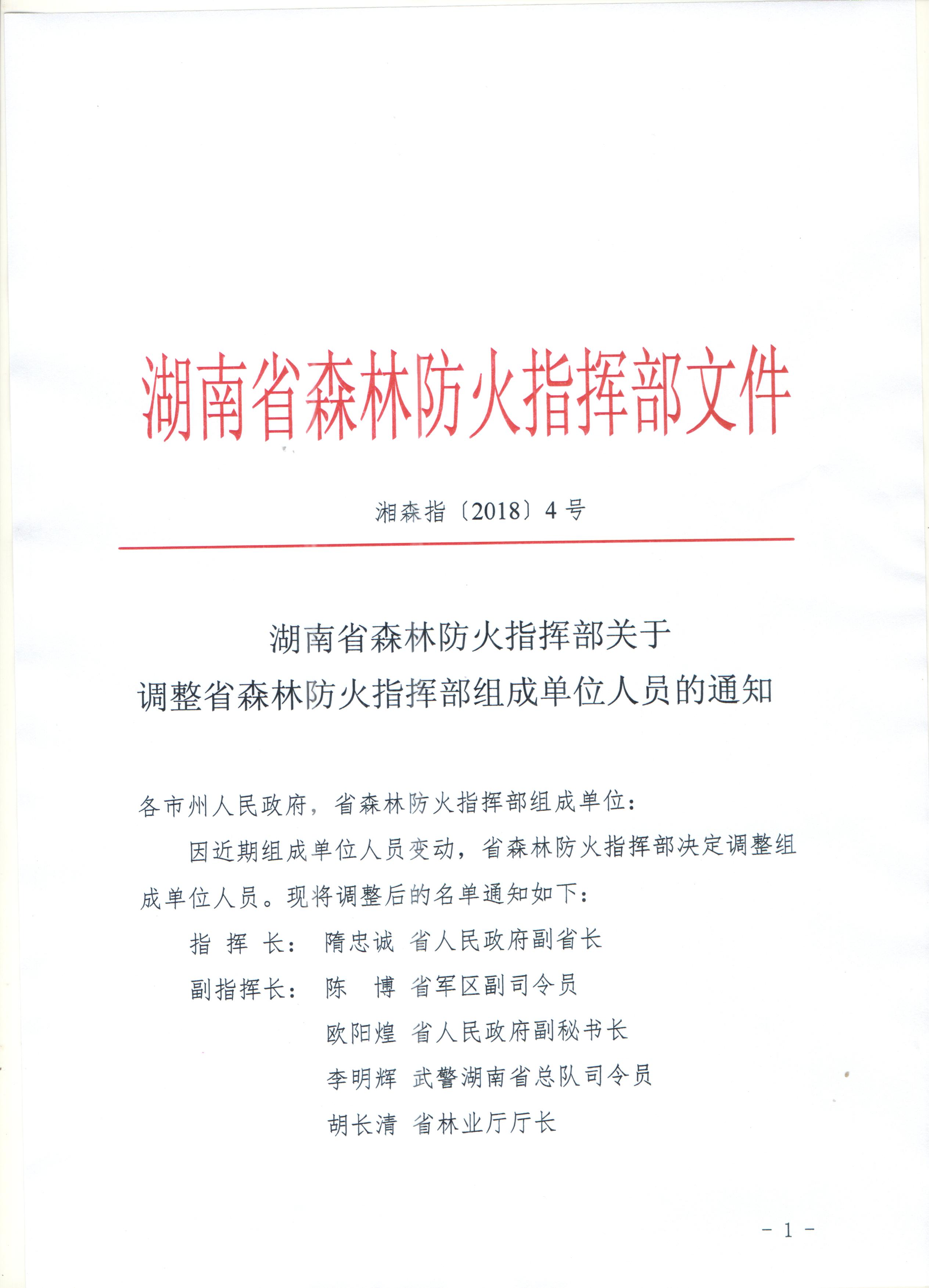湖南省森林防火指挥部关于调整省森林防火指挥部组成单位人员的通知
