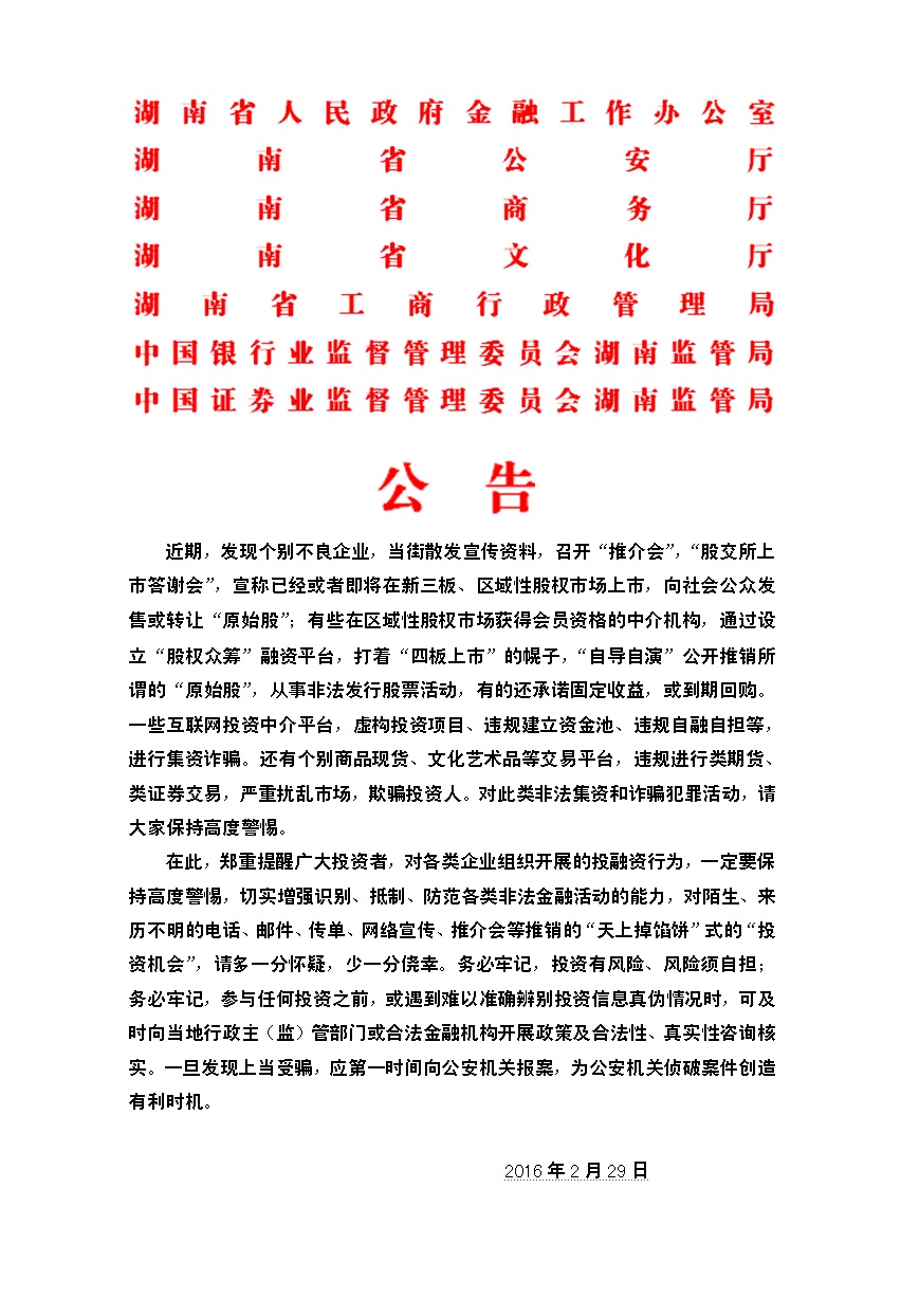 关于严防非法集资和诈骗活动的公告