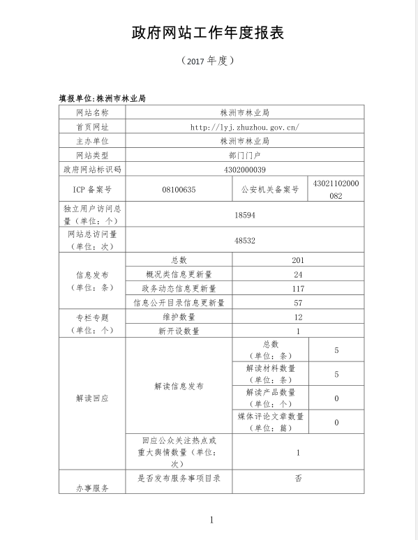 株洲市林业局政府网站工作年度报表