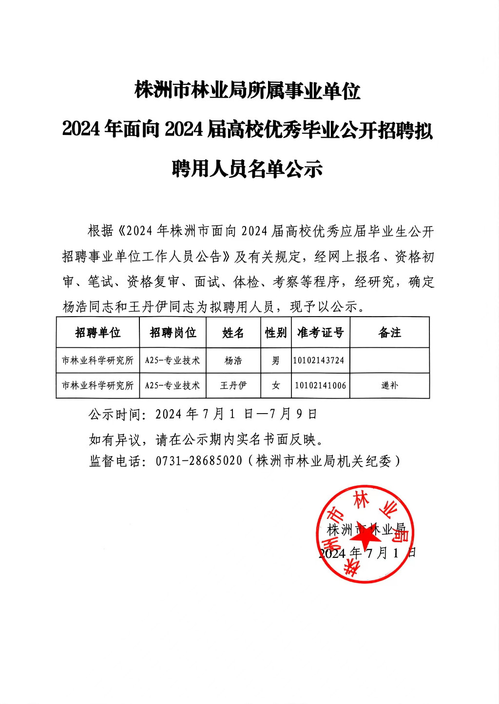 株洲市林业局2024年公开招聘工作人员拟聘人员公示
