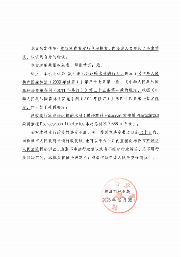 林业行政处罚决定书、株林罚决字〔2025〕第4号